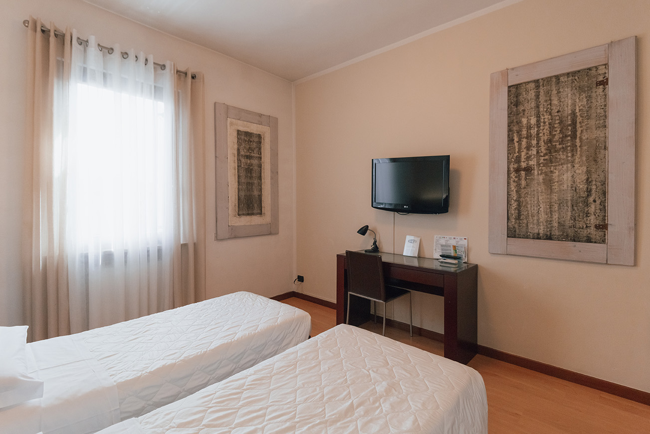Connecting room (courtyard side) with 2 flat-screen TVs, air conditioning and minibar. Upon request we can join or separate the beds to ensure greater comfort for our customers.